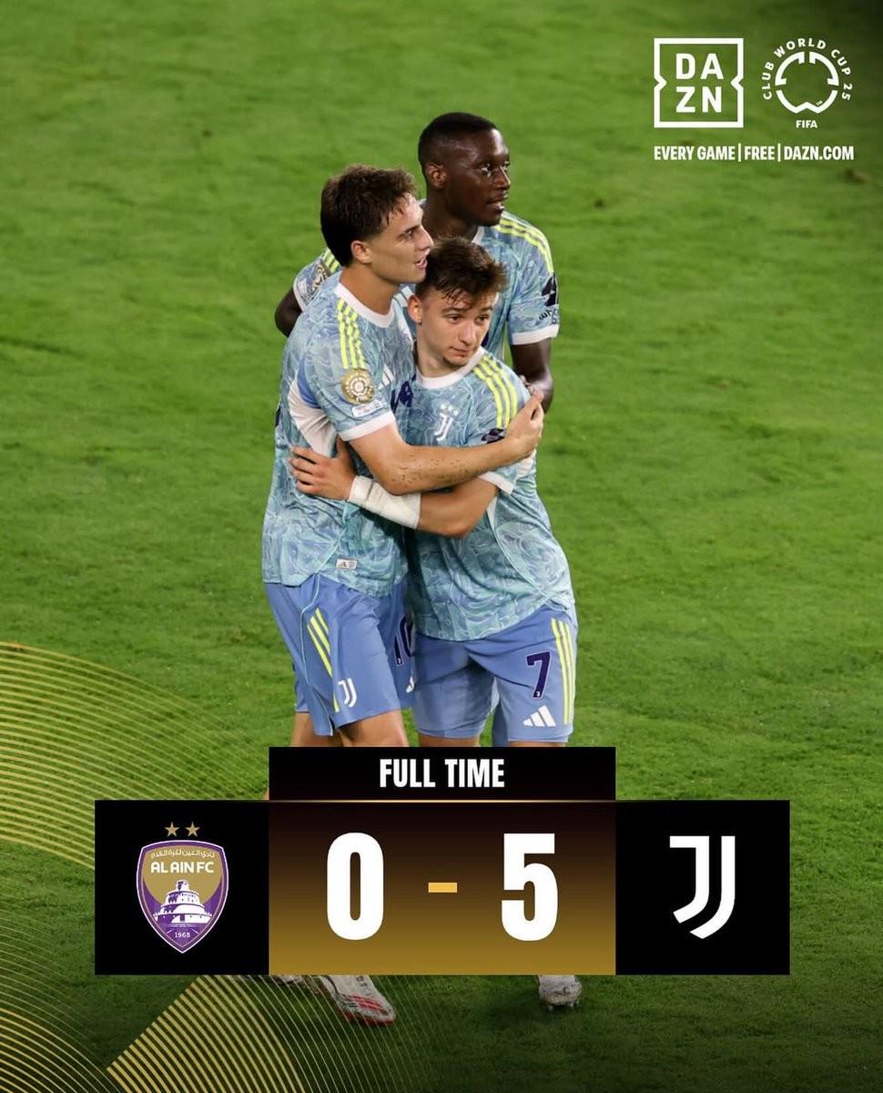 自2003年以來,尤文首次在國際賽事中單場凈勝至少5球