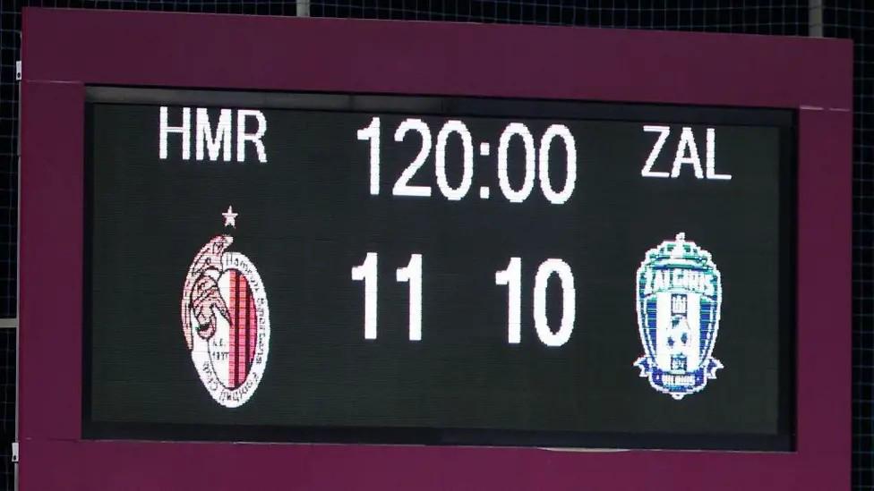 11-10,歐冠資格賽哈姆倫斯巴達(dá)vs扎爾吉里斯點(diǎn)球共罰了14輪