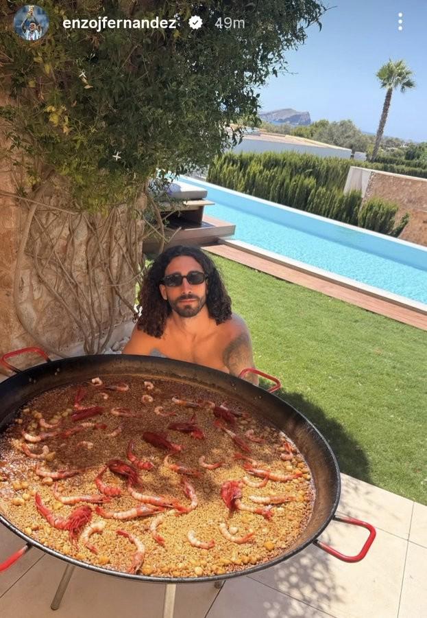 泳池派對,恩佐社媒曬出與庫庫雷利亞吃海鮮飯的照片