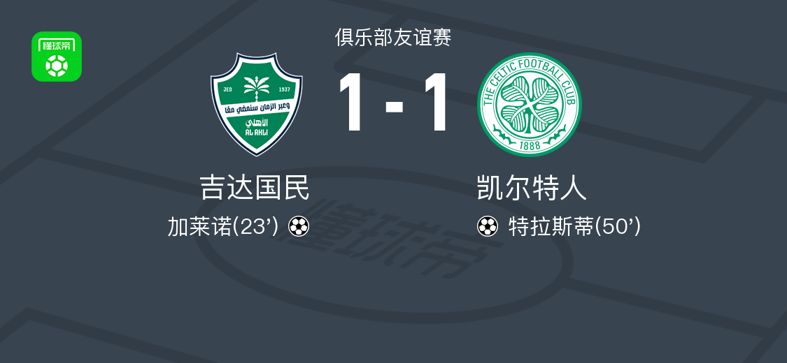 吉達國民1-1凱爾特人,加萊諾首開記錄,特拉斯蒂救主