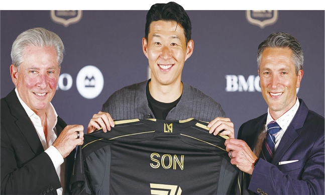洛杉磯FC在其社交平臺(tái)上表示:“我們已經(jīng)從熱刺隊(duì)完全簽下了孫興慜。孫興慜是足球歷史上最具天賦和最受歡迎的亞洲球員之一,他在熱刺隊(duì)效力10年后加入了我們?!痹谶@段文字背后,配圖是孫興慜在美國加利福尼亞州洛杉磯的BMO體育場舉行的LAFC加盟新聞發(fā)布會(huì)上,與共同擁有者貝內(nèi)特·羅森索爾(左)和總經(jīng)理約翰·索林頓一起,手持印有7號(hào)球衣的照片合影留念的一幕。根據(jù)合約內(nèi)容,孫興慜將以指定球員身份(Designated Player,不受工資帽限制的球員)注冊至2027年,并且有延長至2028年的選項(xiàng)。此外,還包含了延長至2029年6月的選項(xiàng)?!蓖瑫r(shí),孫興慜將占據(jù)‘國際球員名單’中的一個(gè)名額,一旦他獲得P-1簽證和國際轉(zhuǎn)會(huì)證明(ITC),他將獲得參賽資格。”