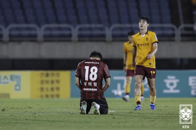 但下半場,光州的賴斯披掛上陣后,球隊(duì)開始占據(jù)主動(dòng),并很快利用一次邊路傳中,由后衛(wèi)趙誠權(quán)頭球破網(wǎng)扳平比分,這個(gè)進(jìn)球也徹底撲滅了富川的反撲氣焰。富川雖然把外援全部換上,但由于后防的失誤,被光州的申昶武利用反擊再入一球,1-2!最終富川FC1995主場1-2不敵光州FC,總比分1-4被對手淘汰,光州FC歷史性進(jìn)入韓國杯決賽!