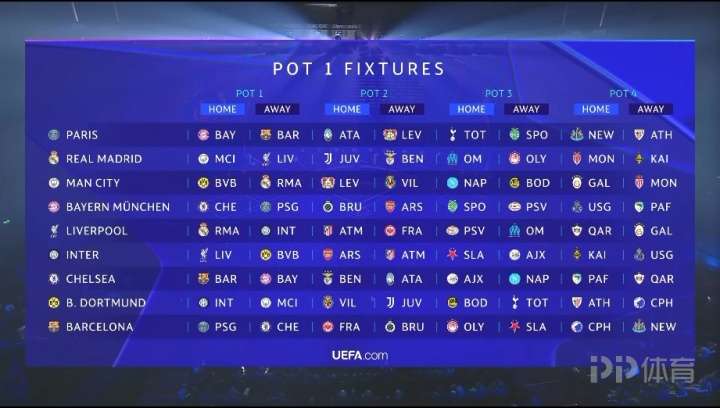 歐冠聯(lián)賽階段對(duì)陣:皇馬將戰(zhàn)曼城利物浦 巴黎對(duì)陣巴薩拜仁