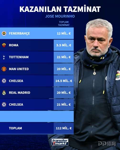 德轉(zhuǎn)統(tǒng)計(jì)穆里尼奧解雇賠償金:7次下課獲賠1.12億歐