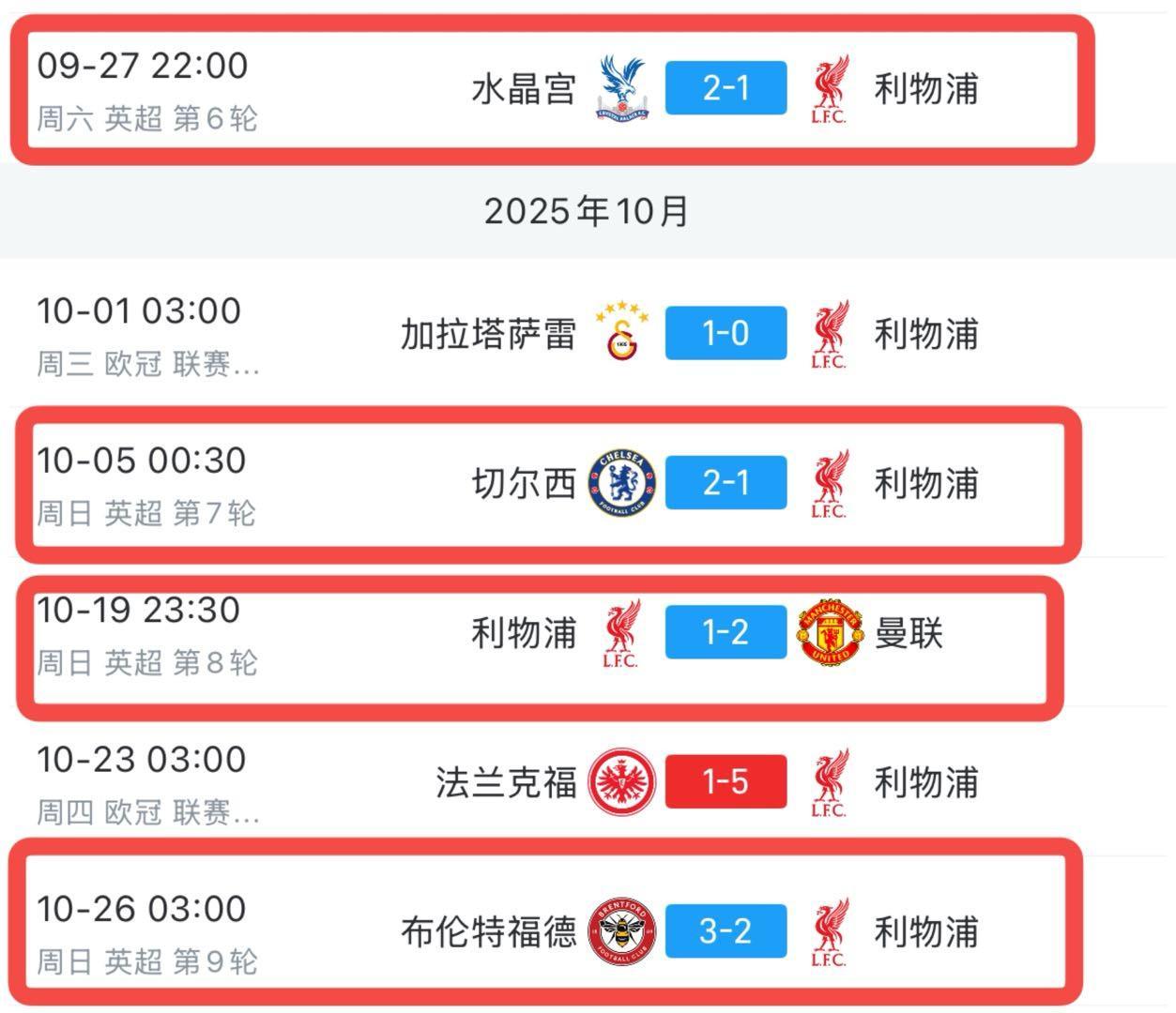 多少有點反差,利物浦英超開局5連勝后緊跟著一波4連敗