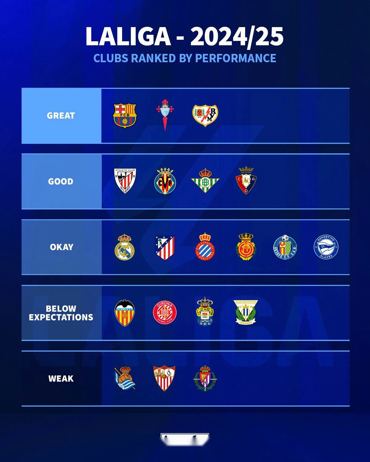德轉(zhuǎn)評本賽季西甲各隊表現(xiàn):巴薩極好,皇馬、馬競及格