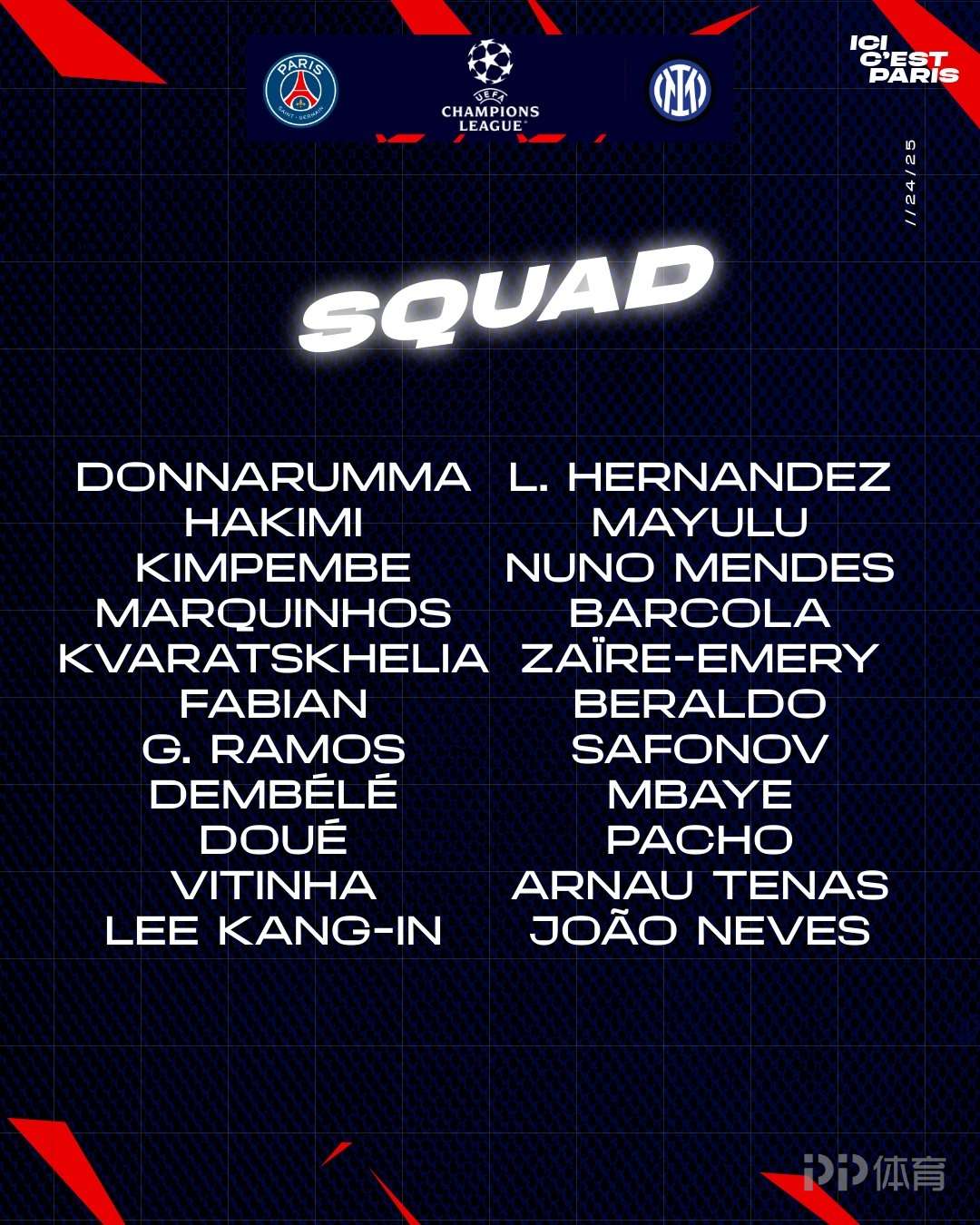 巴黎歐冠決賽名單:登貝萊、K77領(lǐng)銜 阿什拉夫、李剛?cè)试诹?/h1>