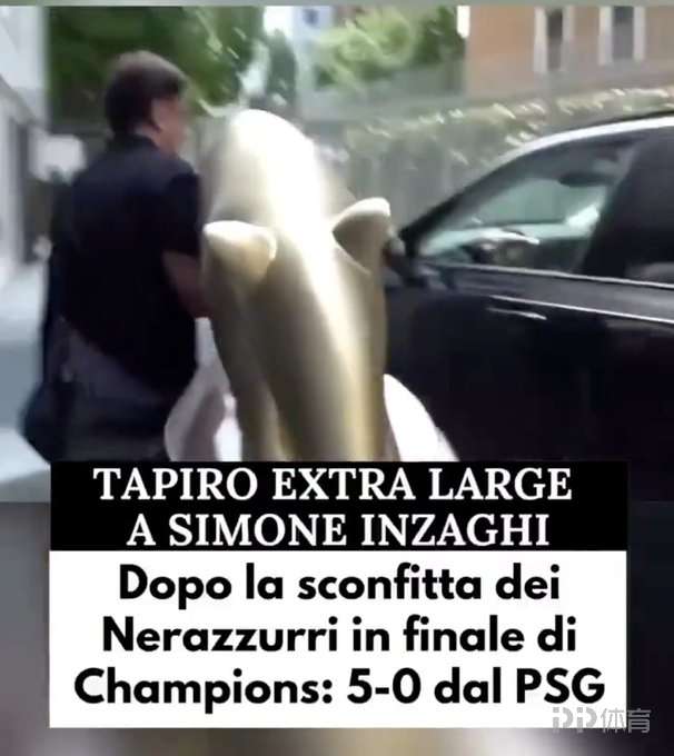 歐冠決賽,國米0-5慘敗巴黎圣日耳曼。次日國米主教練西蒙尼-因扎吉收到了意大利國家電視臺Striscia La Notizia頒發(fā)的“超大金貘獎”。金貘獎是意大利國家電視臺所制作的一個搞笑諷刺類獎項,主要頒發(fā)給近期最倒霉最失意的人物。 正常尺寸的金貘獎: ![]() 超大金貘獎: ![]() |